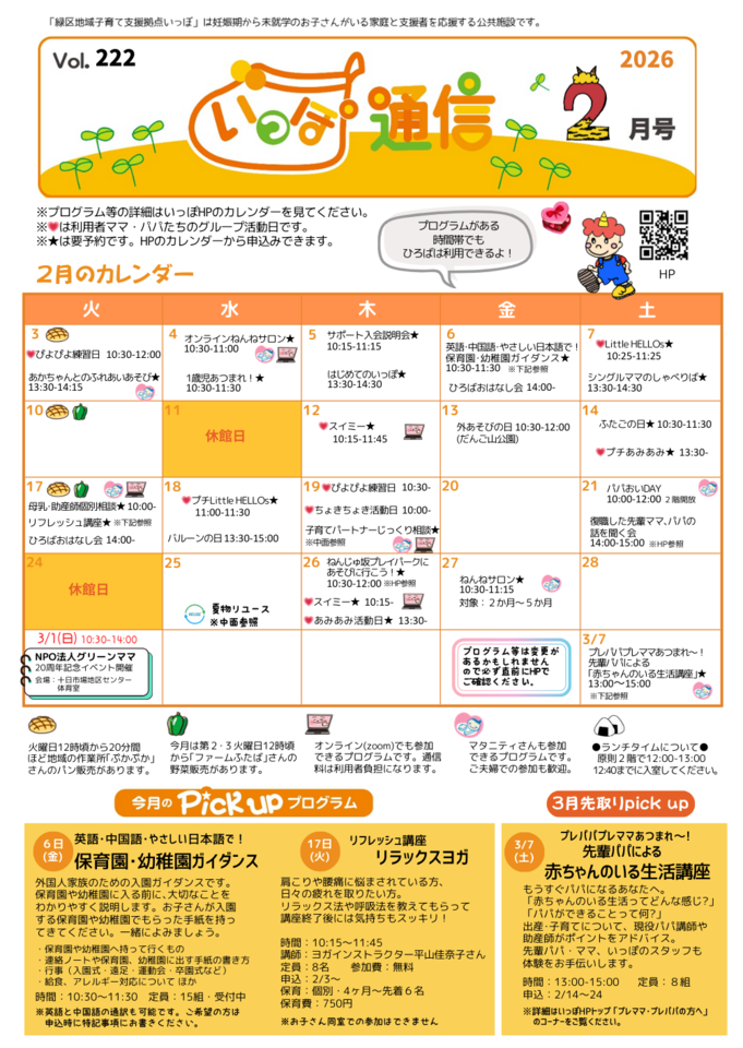 プログラム等は変更になることもありますので、必ず直前にHPのカレンダーでご確認ください。